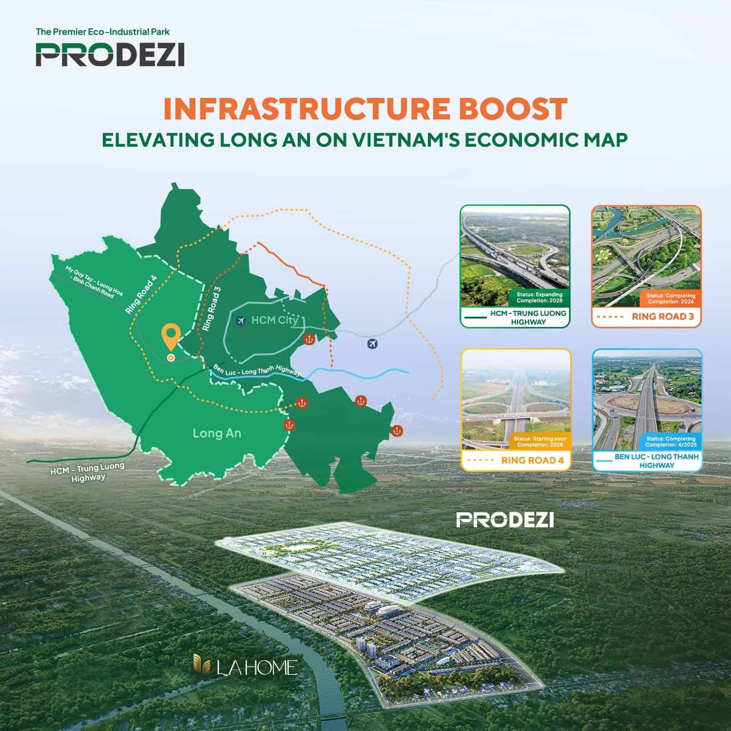 ホーチミン市に隣接するベトナムのロンアン省に、PRODEZI工業団地(プロデジIP)が誕生しました。この工業団地は、Prodezi Long An CorporationとHuong Viet Holding(HVH)が共同で開発した、環境に配慮した先駆的なプロジェクトです。